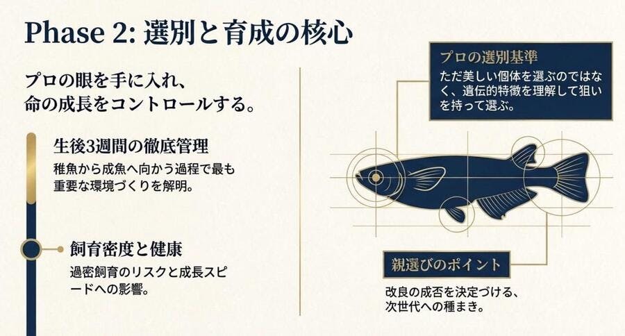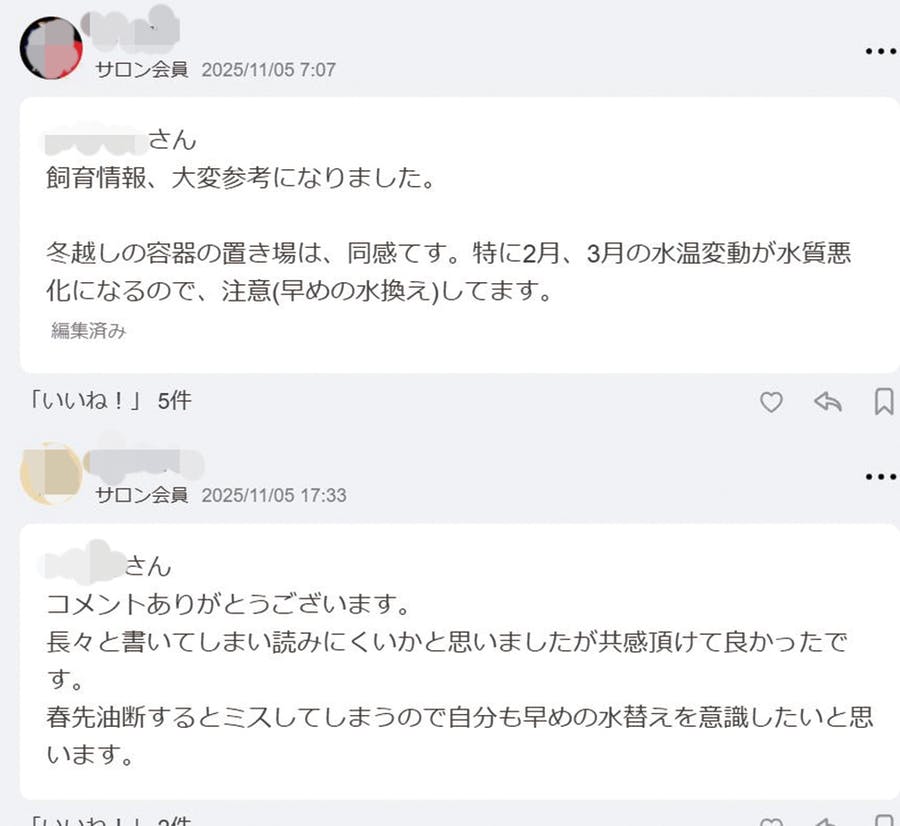 水質、水温、飼育容器、餌の与え方など、環境の違いによって成長や仕上がりには変化が生まれます。