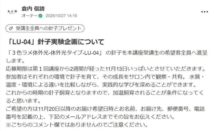 MedaCollege(メダカレッジ)四ヵ月講座 第二期