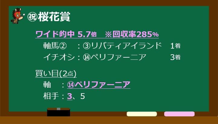 桜花賞2023 【ワイド的中!回収率285%】