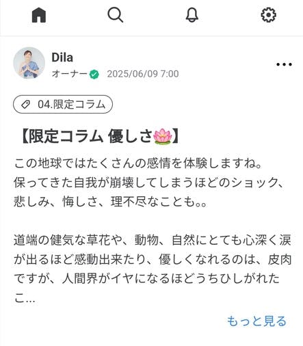 コズミックナビゲーター®ディラが直接配信する宇宙からのメッセージ、音声配信、動画配信などを通して「本当の覚醒」へとナビゲートする公式サロンです。魂の迷子を卒業したい!という方に、自分というかけがえのない存在をより深く知り、理解するための限定配信、交流を行なっていきます。