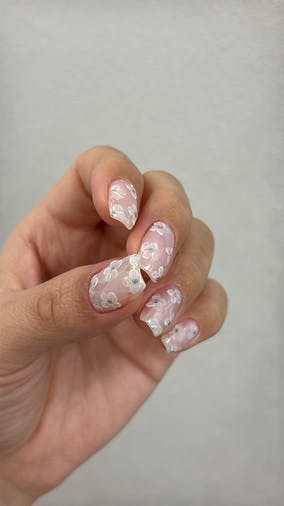 サロンでも人気なネイチャーデザイン♪ 奥行きがとっても可愛いアートです!