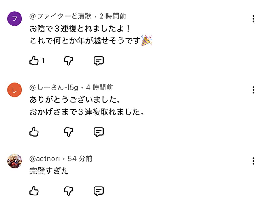 的中&嬉しいコメント