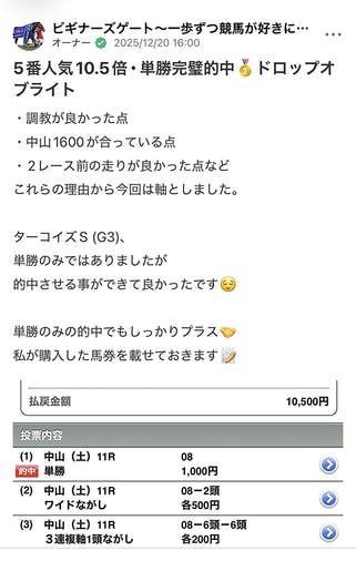 競馬予想に必要なファクターを全て兼ね備えたオールラウンダー!直近でもwin5的中!重賞レースは回収率200%超えのちゃぶ君の…- 運営ツール